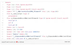 anyrefis to allow pointer of types in the client namespace to be passed to WebAssembly function as arguments (and returned as well):